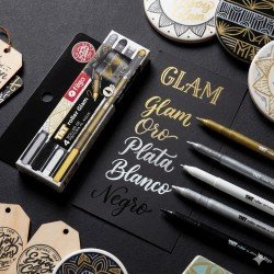 Este set GLAM reúne lo mejor del brillo metálico y el contraste clásico. Incluye 4 bolígrafos TNT Roller de trazo 1.0 mm, ideales para agregar detalles sofisticados y de alta precisión a tus creaciones. La selección perfecta de tonos para destacar sobre cualquier fondo.